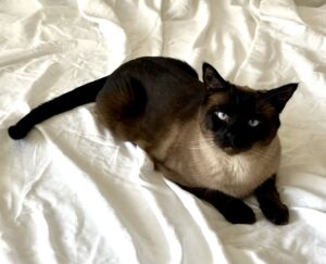 Oh, poor Chanel. She got stuck at the top of a redwood tree for a week. She saw the neighbor’s dog running toward her, panicked, and ran right up the tree. But then she didn’t know how to get down, so she just kept going up until she was at the top. The tree had been topped at some point, so the branches sort of formed a flat platform, and she just dug in there.